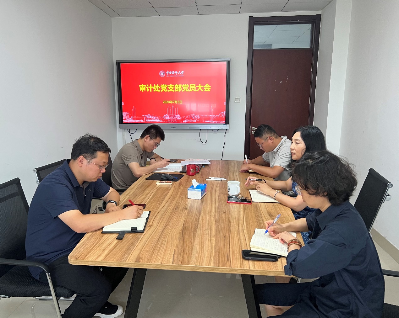为深入学习贯彻习近平总书记关于党纪学习教育的重要讲话和重要指示批示精神,教育党员干部做到学纪、知纪、明纪、守纪,不断增强政治定力、纪律定力、道德定力、抵腐定力,始终做到忠诚干净担当,7月3日,审计处党支部在江宁校区行政楼514工作室开展党员大会,会议由支部书记孙立冰同志主持。