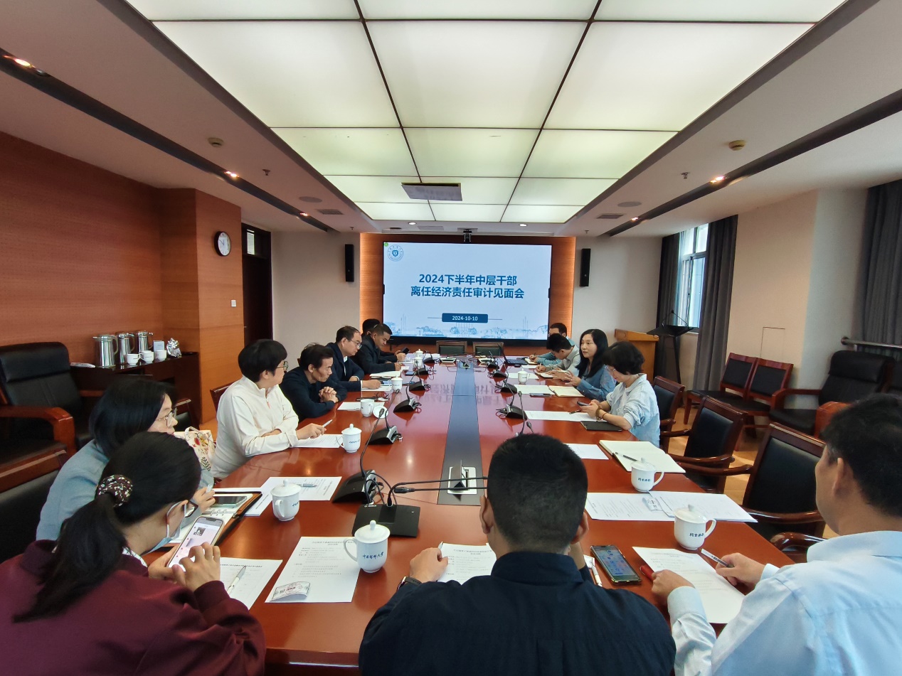 2024年10月10日上午,我校在江宁校区行政楼501会议室召开2024年第二批校内中层干部离任经济责任审计见面会。党委办公室、机关党委、基础医学与临床药学学院、马克思主义学院的离任干部和现任领导以及部门联系人参加会议,审计处相关人员出席会议。会议由审计处处长孙立冰主持。